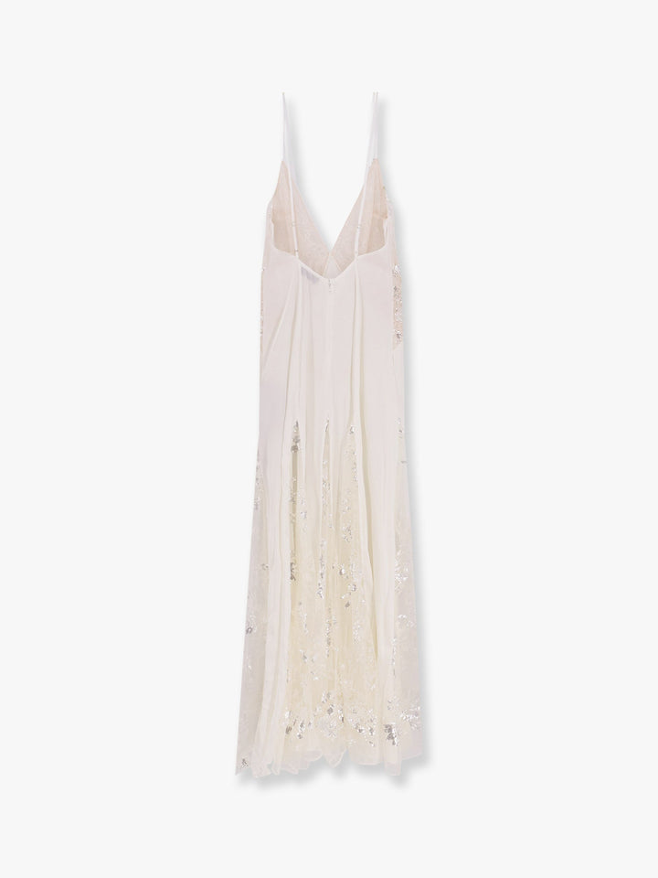 Elisabetta Franchi Red Carpet Dress In Silk Georgette Fabric And Embroidered Lace