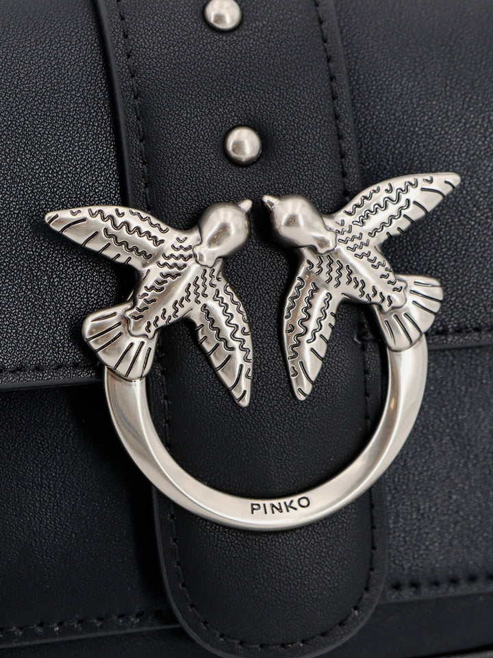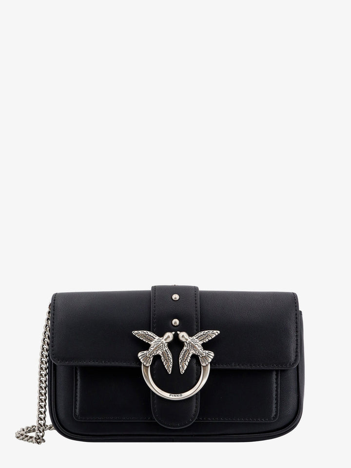 Pinko Love One Pocket Leather Shoulder Bag With Love Birds Buckle
