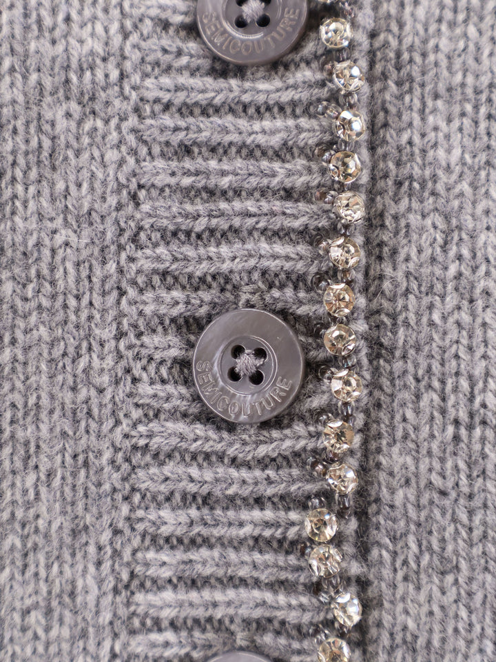 Semicouture Wool And Cashmere Cardigan With Rhinestones