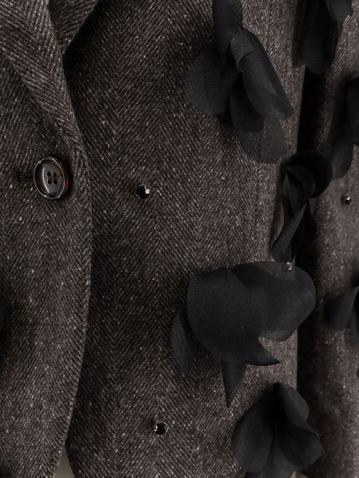 Stella Maxwell X Marella Wool Blend Blazer With Rhinestones And Flower Patch