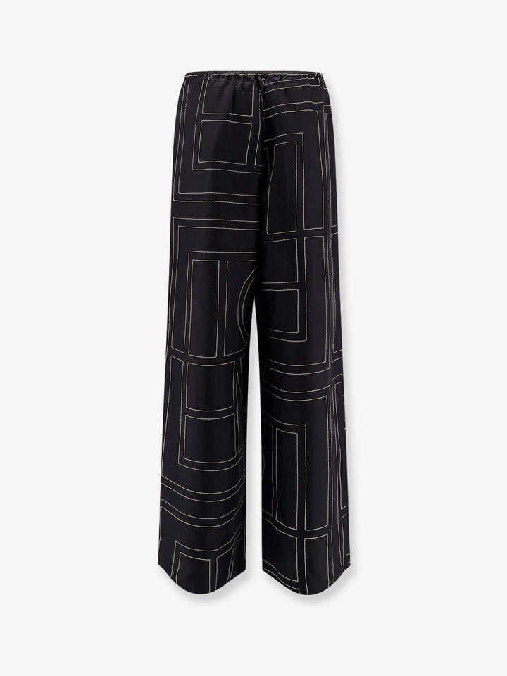 Toteme Silk Trousers With Monogram Logo Embroidery